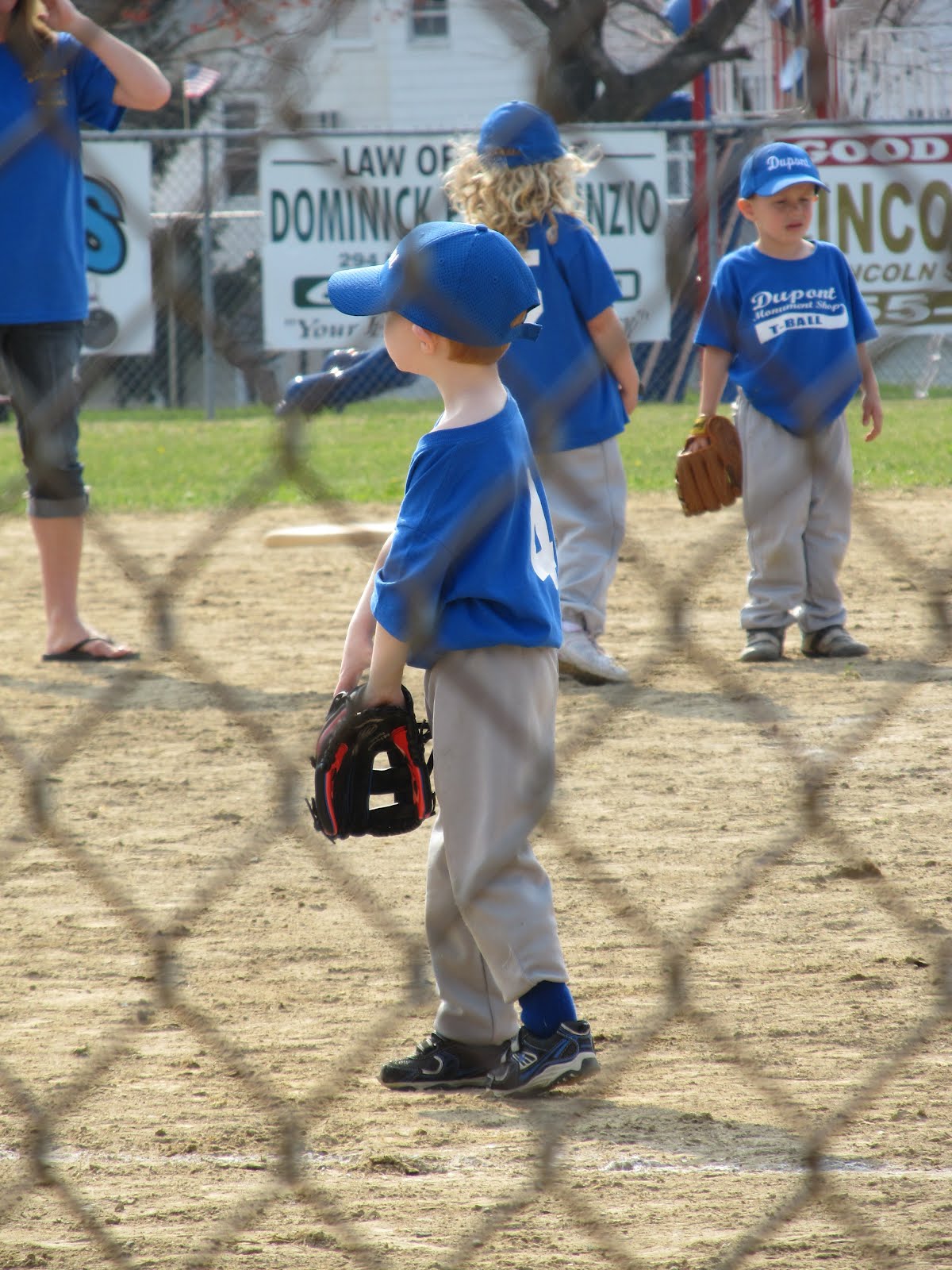 waving to Jacob's mom, glove on correctly (after I shouted to him to get his glove on, and he shouted back, "Is this the right hand, Mom?")