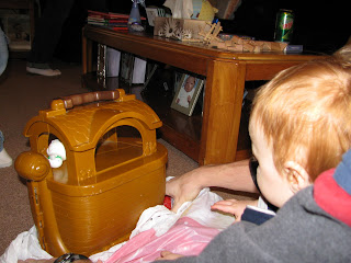 This was Caden's first gift from his GG and G Pap opened on 12/23. He was only allowed to open one...my family is a stickler for opening presents on Christmas Day. He was upset that he couldn't get it out of the packaging to play with it.